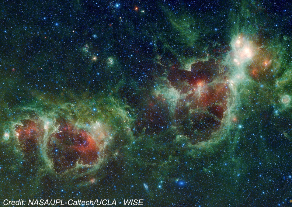 I spent the first hour and a half of the night just sitting or lying back in my zero gravity chair scanning the winter sky with my night-vision device (Gen 3 white-phosphor PVS-14) handheld at 1x. With a 6nm H-alpha filter attached, you have a new window into the universe with eyes sensitive to H-alpha. And with a 40° actual field of view at 1x, the view of large objects in the Milky Way is quite a trip. I logged about two dozen nebulae, but here’s a rundown of 10 huge HII regions. Most of these objects are strikingly bright with night-vision (and popular wide-field imaging targets) and even visible from my badly light-polluted backyard in Albany. But they are much more impressive from a dark site.